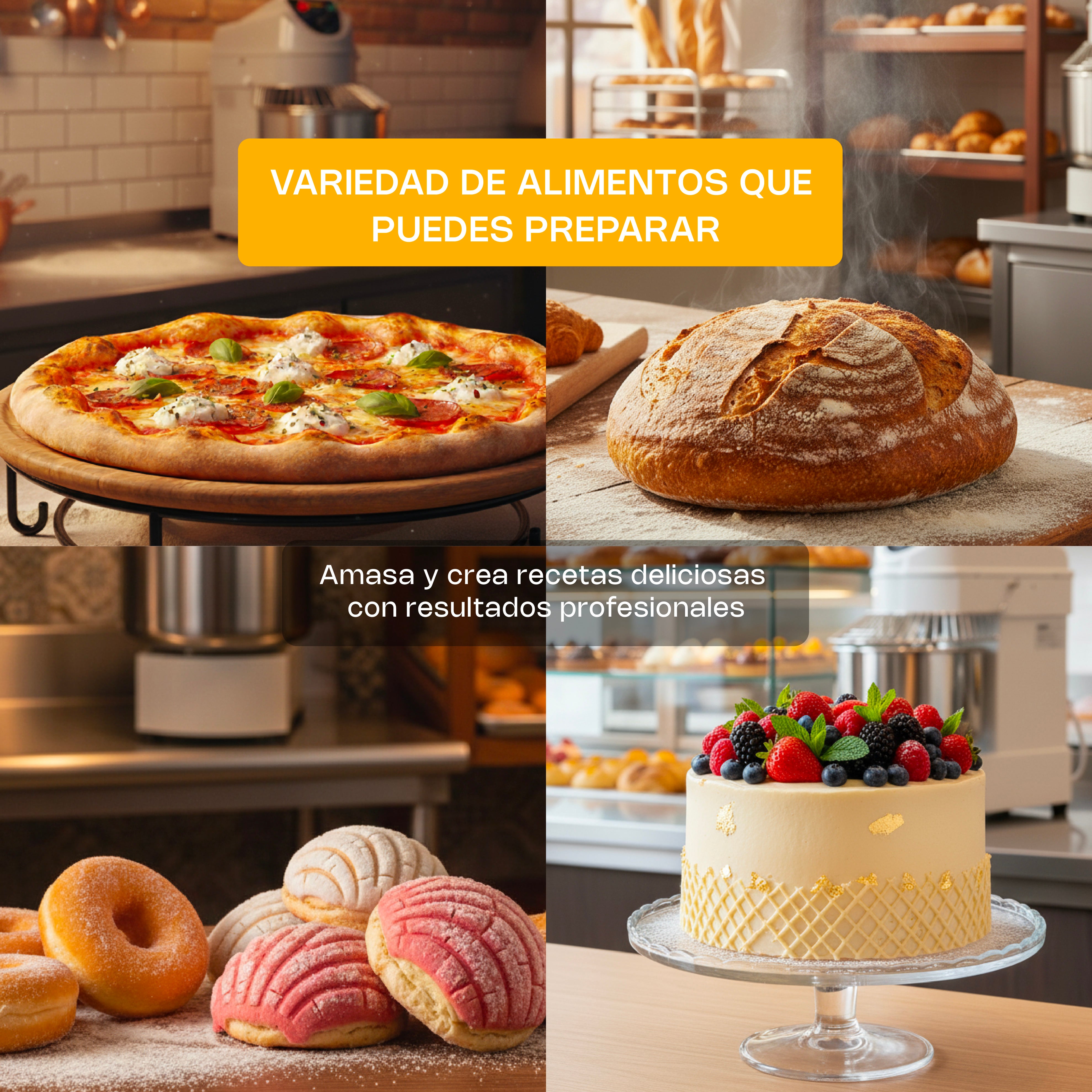 El temporizador de 60 minutos permite programar el tiempo de amasado con precisión, asegurando resultados constantes sin sobremezclas. Su tazón de acero inoxidable desmontable y la estructura del equipo facilitan la limpieza y el mantenimiento diario, prolongando su vida útil.