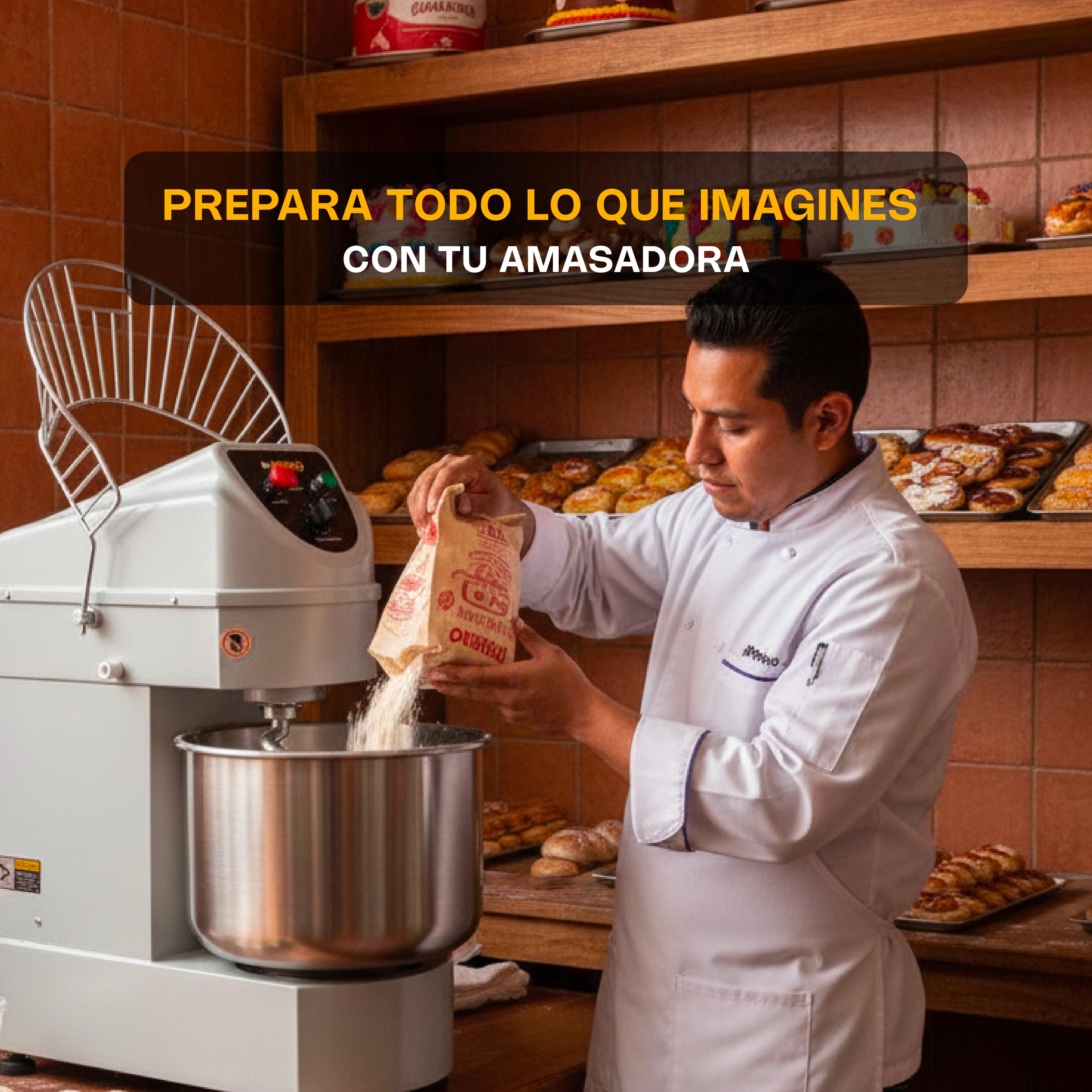 La amasadora AMASA-30 de Rhino combina potencia industrial, precisión y practicidad en un solo equipo. Su sistema de doble acción giratoria, motor de alto rendimiento y temporizador integrado garantizan una mezcla homogénea y eficiente, convirtiéndola en la aliada perfecta para negocios que buscan productividad, calidad y durabilidad en su proceso de amasado.