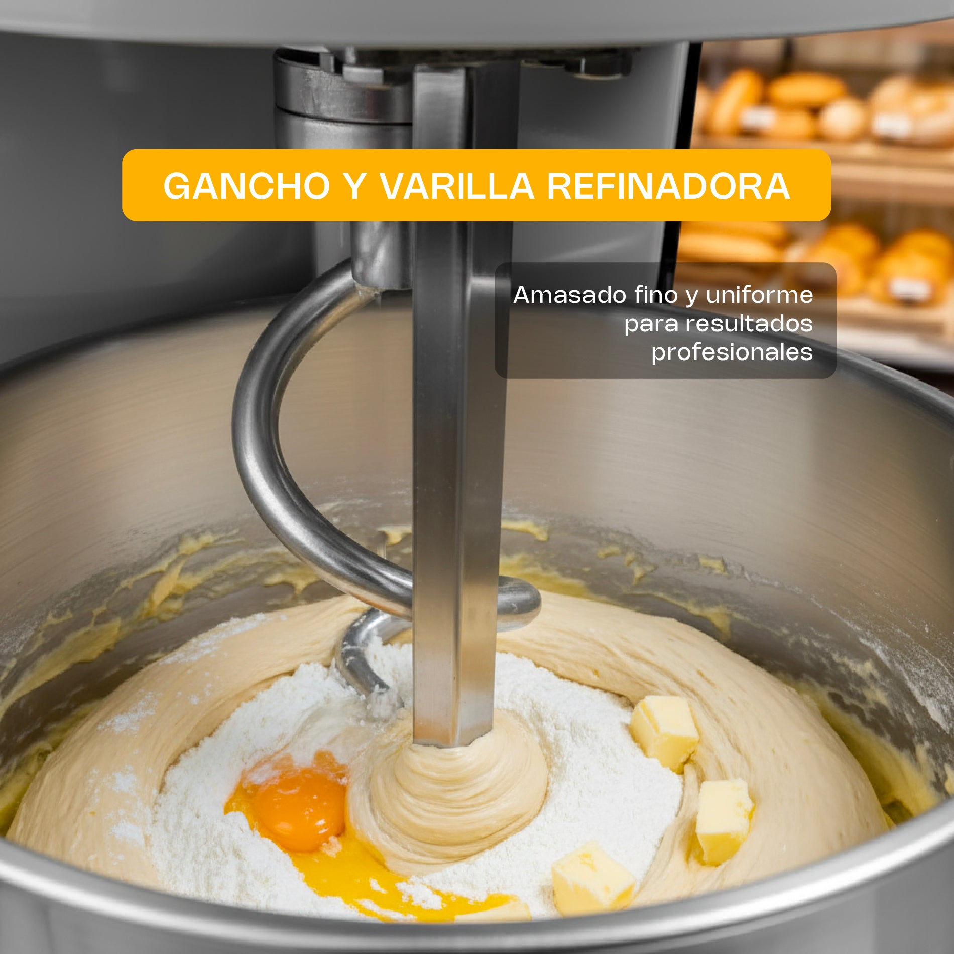 - Diseño exclusivo y fácil de operar, a diferencia de otras amasadoras más complicadas de manejar.