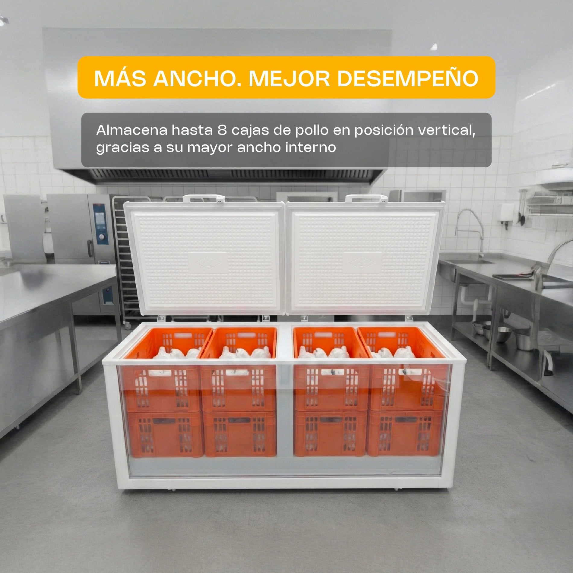 El refrigerante R290 garantiza un bajo consumo energético y una operación más ecológica, reduciendo el impacto ambiental y los costos de operación. Además, la canasta incluida mejora la distribución interna de los productos, facilitando el acceso y la organización dentro del congelador.
