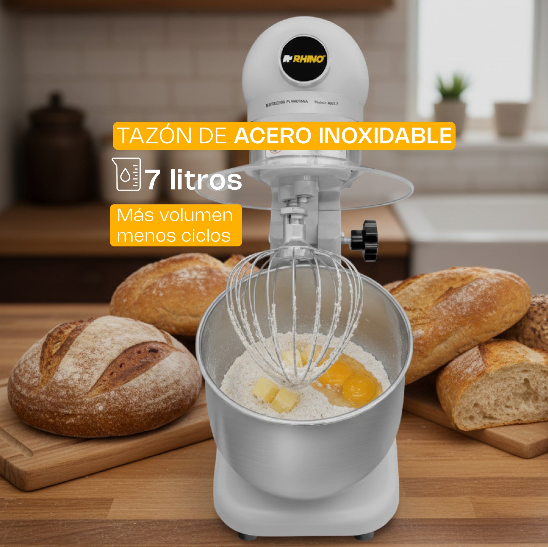 - La batidora planetaria BATI-7 de Rhino es perfecta para quienes necesitan una batidora compacta, eficiente y segura, capaz de manejar una variedad de tareas de mezcla en la cocina. Con su potente motor, múltiples velocidades y accesorios intercambiables, es una herramienta versátil para cualquier chef profesional o aficionado.