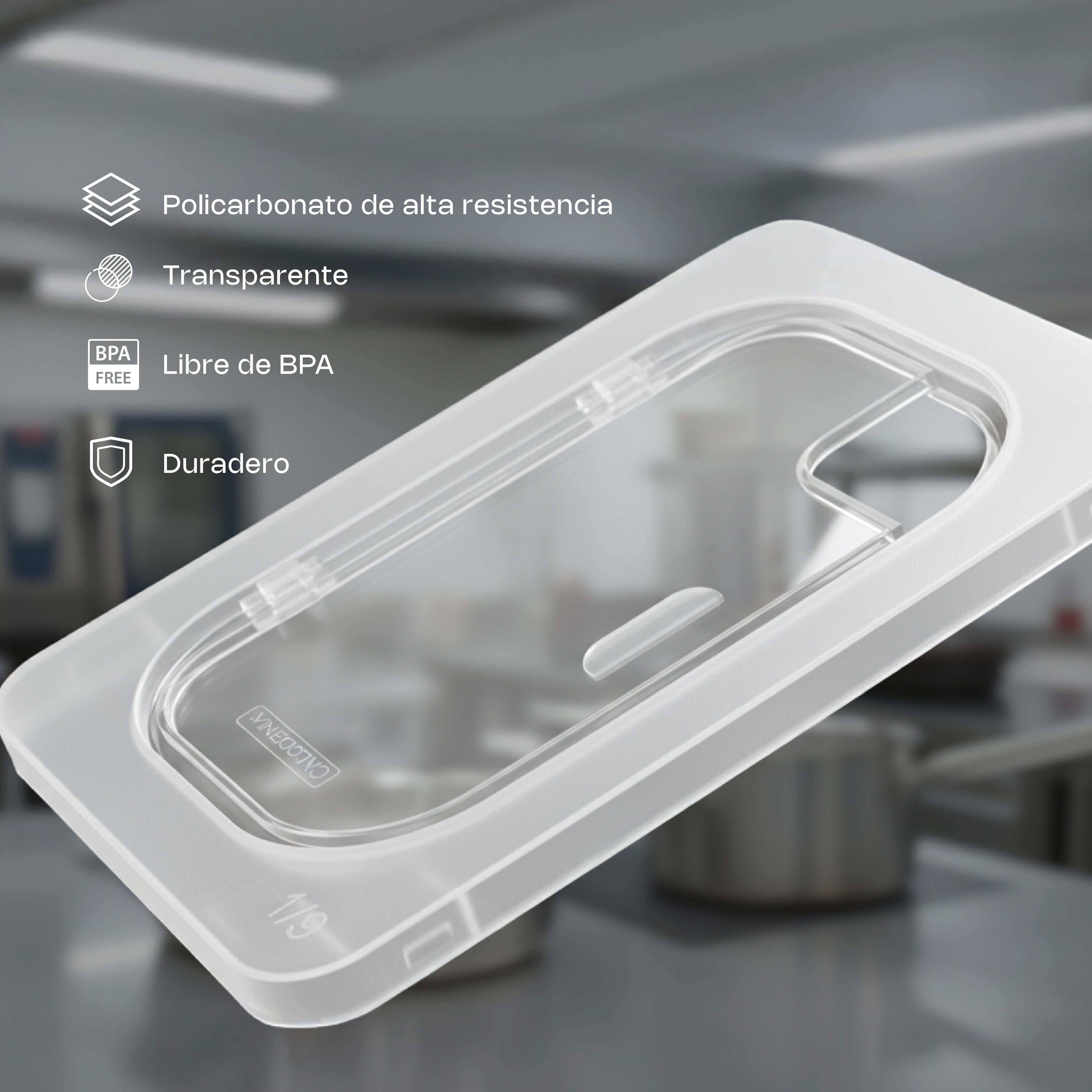 Fabricadas en policarbonato de grado alimenticio, ofrecen una alta resistencia al uso rudo y a los cambios de temperatura que se presentan en el uso diario. Su diseño garantiza una protección efectiva contra contaminantes externos, reduciendo el riesgo de contaminación cruzada y asegurando un servicio más higiénico.